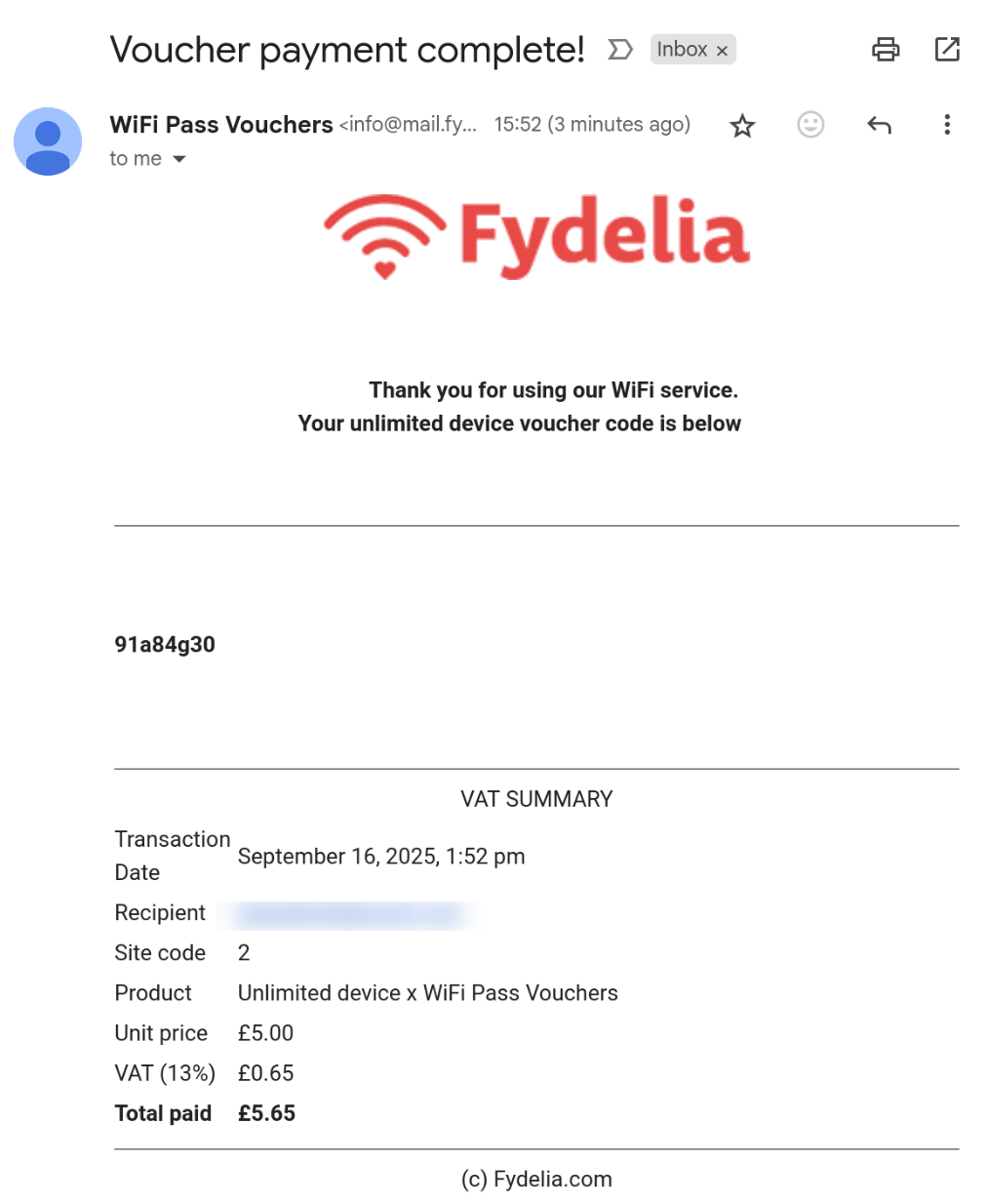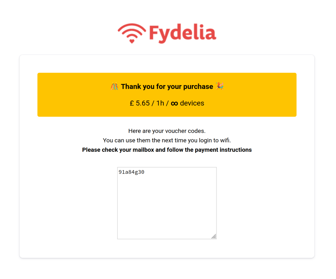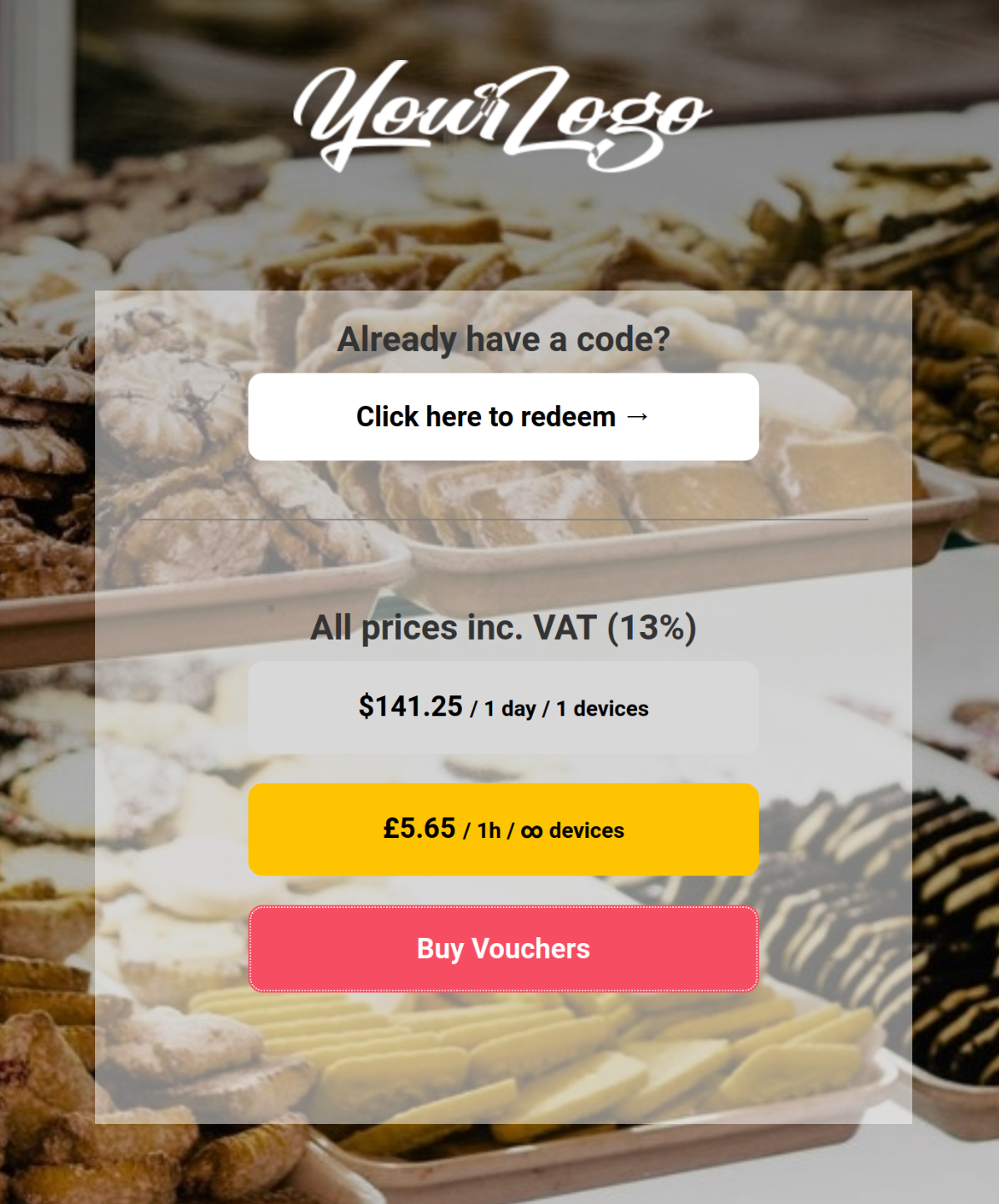 When you connect to WiFi you will have the option to purchase WiFi vouchers. The voucher can be redeemed instantly, and is also sent to your email address if you wish to use it later or have purchased multiple vouchers.
